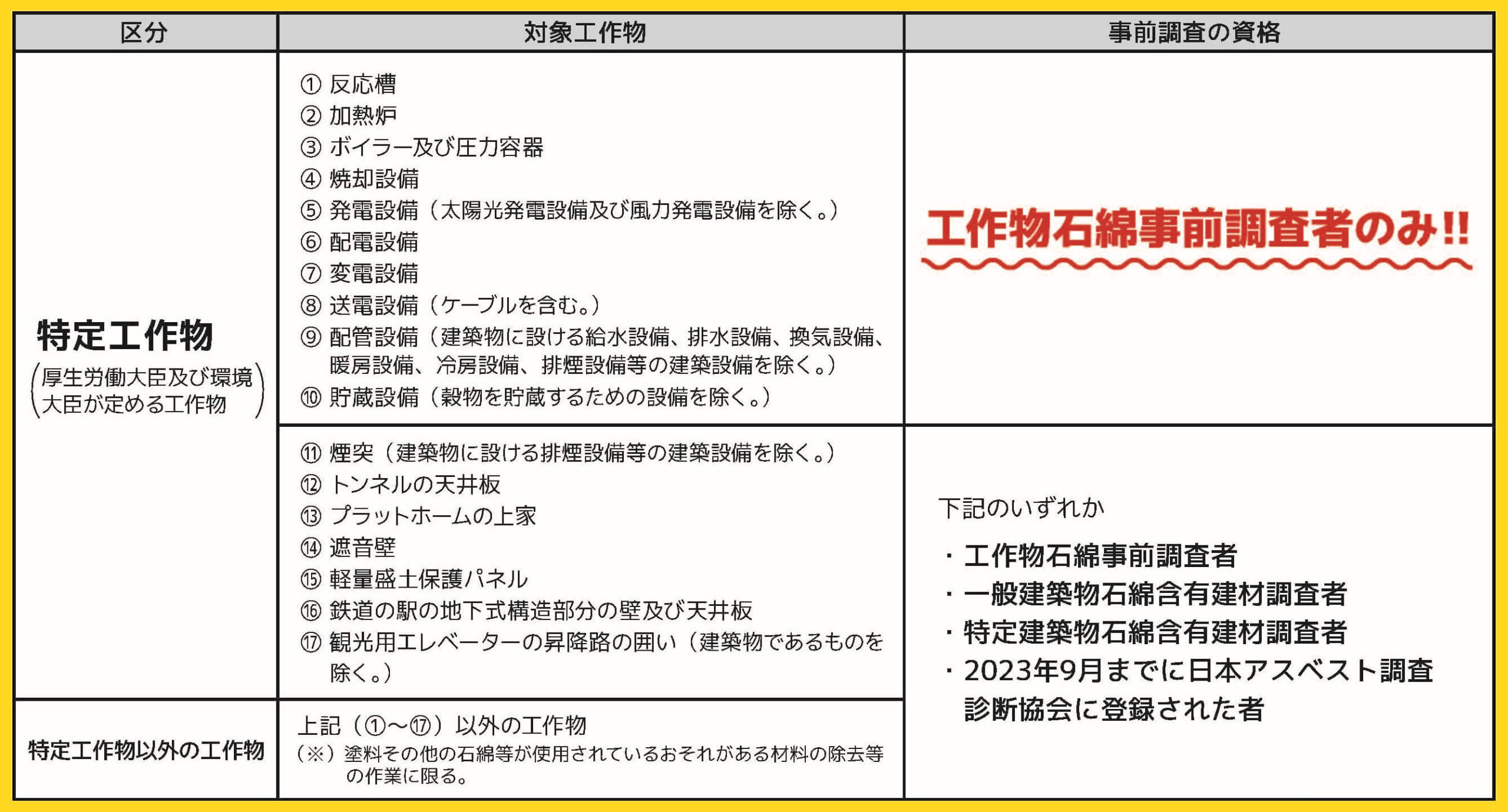 2026年1月1日から既存の石綿調査者は一部の特定工作物の調査ができなくなります。